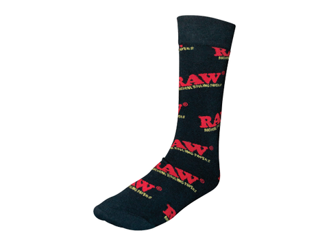 Great looking socks by the well know smokers brand RAW! Size 42-46. These RAW Black Socks are made from a carefully crafted blend. Please wash gently and air dry just to keep their colors and texture perfect.