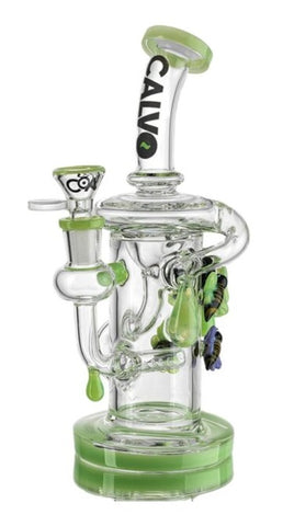 This Bee Recycler rig by the Spanish Calvo brand stands out in our collection for its innovative recycling system and efficient shower head percolator inside. Its design, crafted from hand-blown glass, features striking details of bees, honeycombs, and honey, adding an artistic touch.
