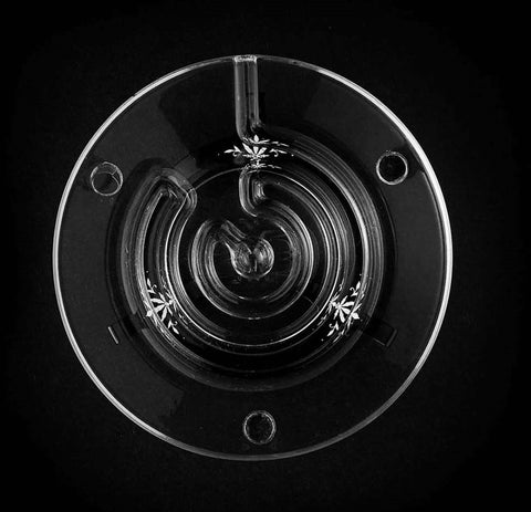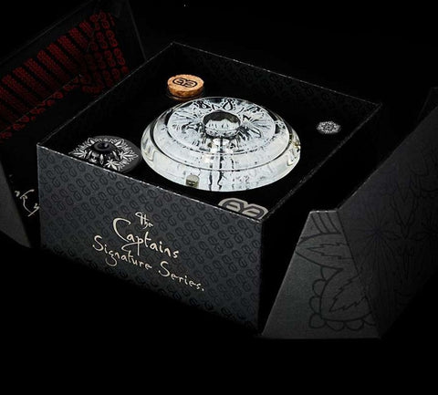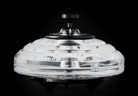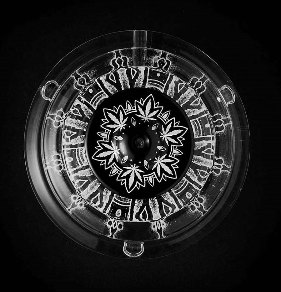 The fantastic cannabis mandala design on the inside of the pipe is laser-cut and really comes into its own thanks to the crystal-clear finish. A small glass with a screens, a poker, a stand, a carb cap and a RED-EYE pin complete the pipe set.